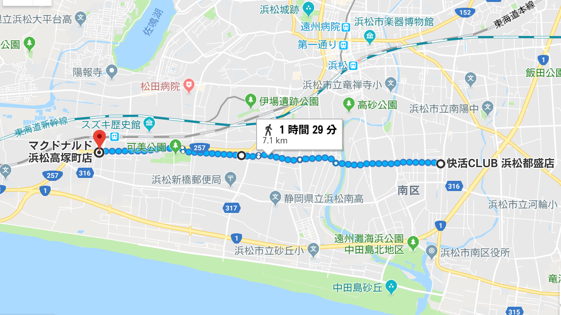 バッテリーはギリギリもたない距離だし、給電ポイントとしていつもお世話になっているマクドナルド・浜松高塚町店をターゲティングしました。