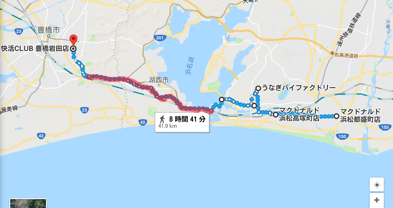 マクドからうなぎパイファクトリーまでの走行距離約6㎞。